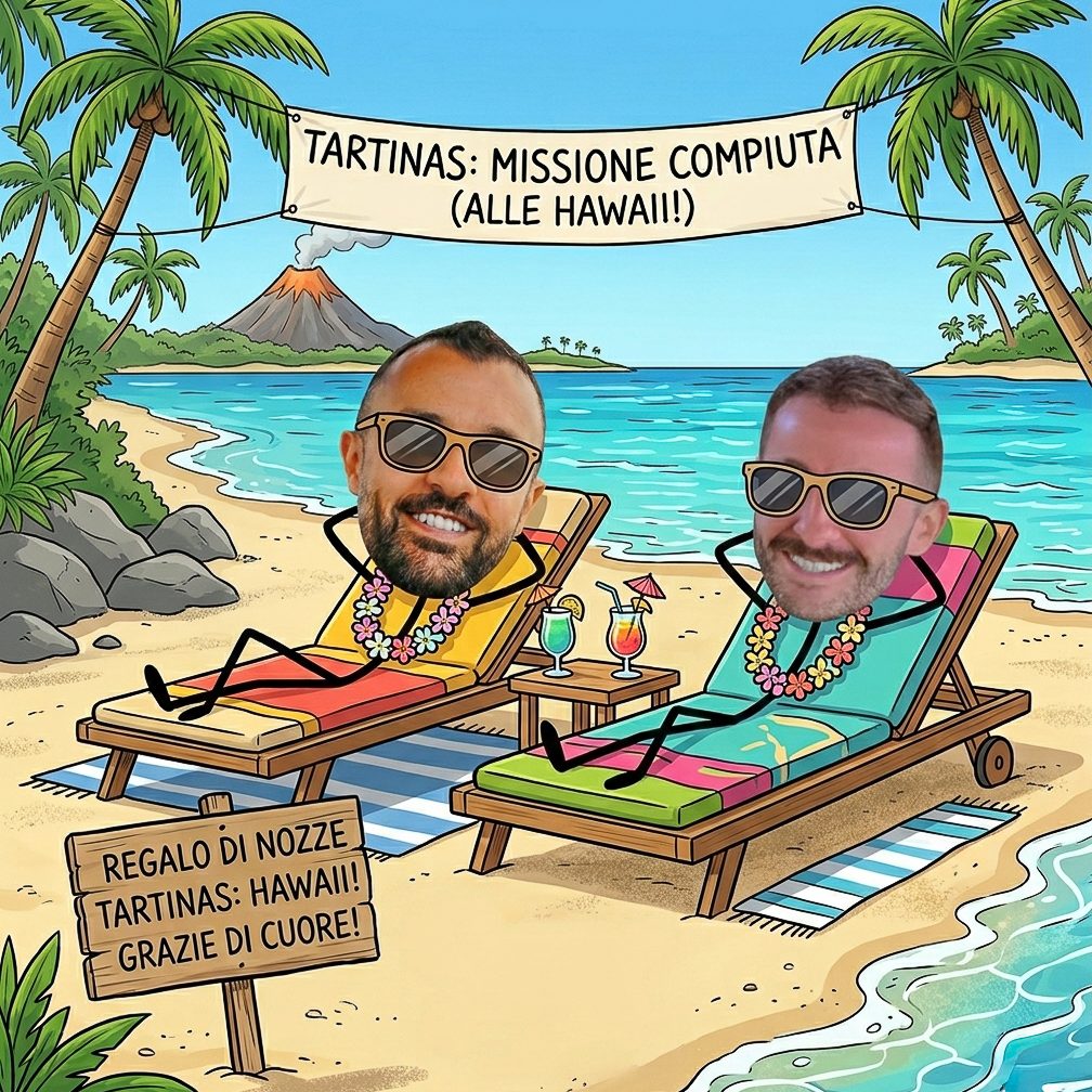 Se però desiderate farci un pensiero, saremmo felici di ricevere un contributo per il nostro viaggio di nozze. Il nostro sogno è volare verso le Hawaii: ogni gesto ci aiuterà a rendere questa esperienza indimenticabile.